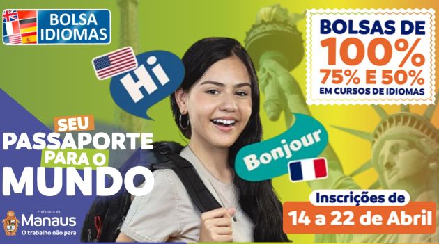 Mais informações, acesse o site: https://portalespi.manaus.am.gov.br/bolsa-idiomas/