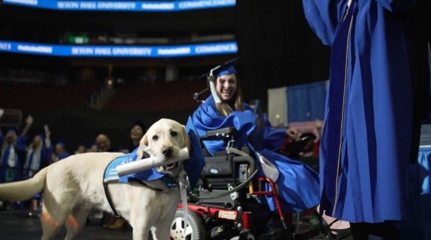 Um cachorro de serviço chamado Justin ganhou a internet nesta semana ao receber um diploma universitário por acompanhar sua tutora, Grace Mariani, em todas as aulas. A jovem se formou em Ciências da Educação pela Seton Hall University, em Nova Jersey (Estados Unidos).