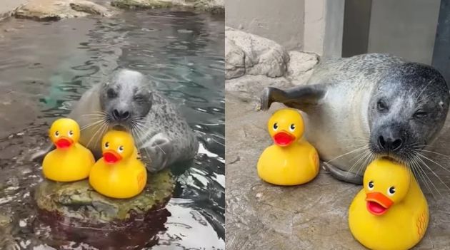 A foca-comum Reggae, de 33 anos, tornou-se a nova estrela das redes sociais após o Aquário da Nova Inglaterra, nos EUA, divulgar um vídeo dela interagindo com um patinho de borracha. Nas imagens, o animal aparece perseguindo, empurrando e até “beijando” o brinquedo enquanto nada em seu tanque. A publicação rapidamente viralizou, tornando-se um dos conteúdos mais assistidos do perfil oficial da instituição no Instagram.