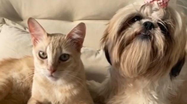 A cena é hilária: quem poderia imaginar uma shih-tzu pedindo para a tutora adotar um gatinho? Giovana, uma shih-tzu bem dengosa, fez isso e mais: ela pede carinho para o amiguinho, um gato caramelo.