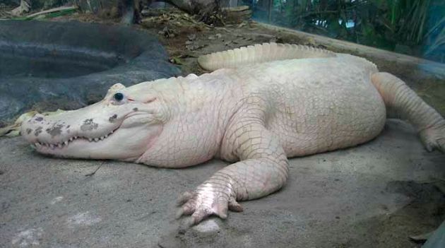 Os jacarés leucísticos, considerados os mais raros do mundo, são conhecidos por sua pele branca e olhos azuis ou acinzentados.