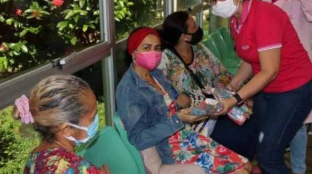 Sorrisos nos rostos, doces em formato de rosa, entrega de perucas e surpresas com os brindes distribuídos às pacientes que estavam, na sexta-feira (07/05), em atendimento na Fundação Centro de Controle de Oncologia do Estado do Amazonas (FCecon), órgão vinculado à Secretaria de Estado de Saúde (SES-AM), marcaram as comemorações do Dia das Mães – celebrado no segundo domingo de maio. A atividade de sexta-feira encerrou as comemorações do Dia das Mães, iniciadas na quarta-feira (05/05). As ações foram realizadas pelo Departamento de Prevenção e Controle de Câncer (DPCC/FCecon), Rede Feminina de Combate ao Câncer do Amazonas (RFCC-AM) e Liga Amazonense Contra o Câncer (LACC). Quem passava pelo corredor do hospital e pelos serviços de Quimioterapia, Radioterapia, Farmácia, Ambulatório e Enfermaria, por exemplo, era surpreendida com um doce em formato de rosa e um brinde – kit de higiene e limpeza. As mulheres que estavam em atendimento no serviço de Quimioterapia também receberam perucas. Ao todo, foram distribuídas 17 perucas.