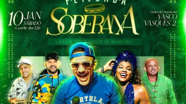 A Mocidade Independente de Aparecida realiza, no próximo sábado, 10 de janeiro, a partir das 12h, a tradicional Feijoada Soberana 2026. O evento acontece no Centro de Convenções Vasco Vasques 2 e integra o calendário cultural e carnavalesco da escola, reunindo samba, gastronomia e confraternização.
