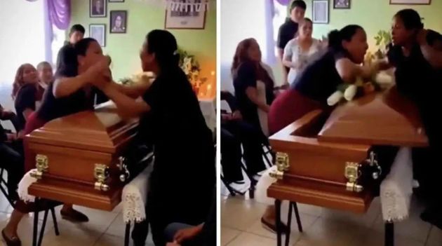 Duas mulheres foram flagradas discutindo durante um velório em Veracruz, no México, depois de terem descoberto que ambas mantinham um relacionamento amoroso com o morto. O momento foi gravado e rapidamente se tornou viral.