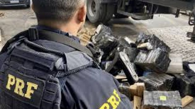 Ao inspecionar a carga, os agentes encontraram diversos fardos de maconha, totalizando aproximadamente 1.214,8 quilos da droga.