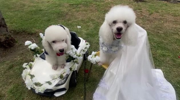 Ao som da marcha nupcial, um casal de poodles subiu ao altar na última quinta-feira (15) em uma cerimônia de casamento em Lima, capital do Peru.